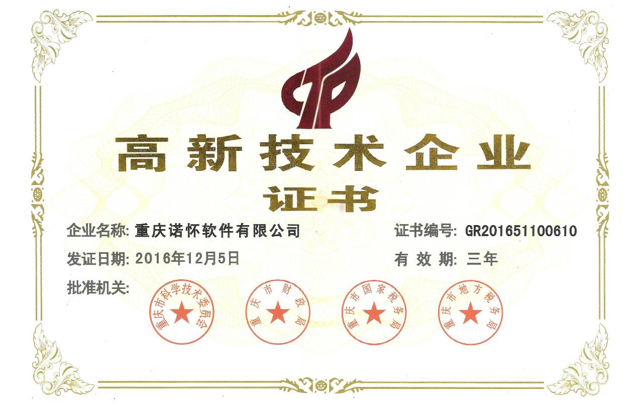 特大喜訊!諾懷軟件榮獲“高新技術企業(yè)”稱號