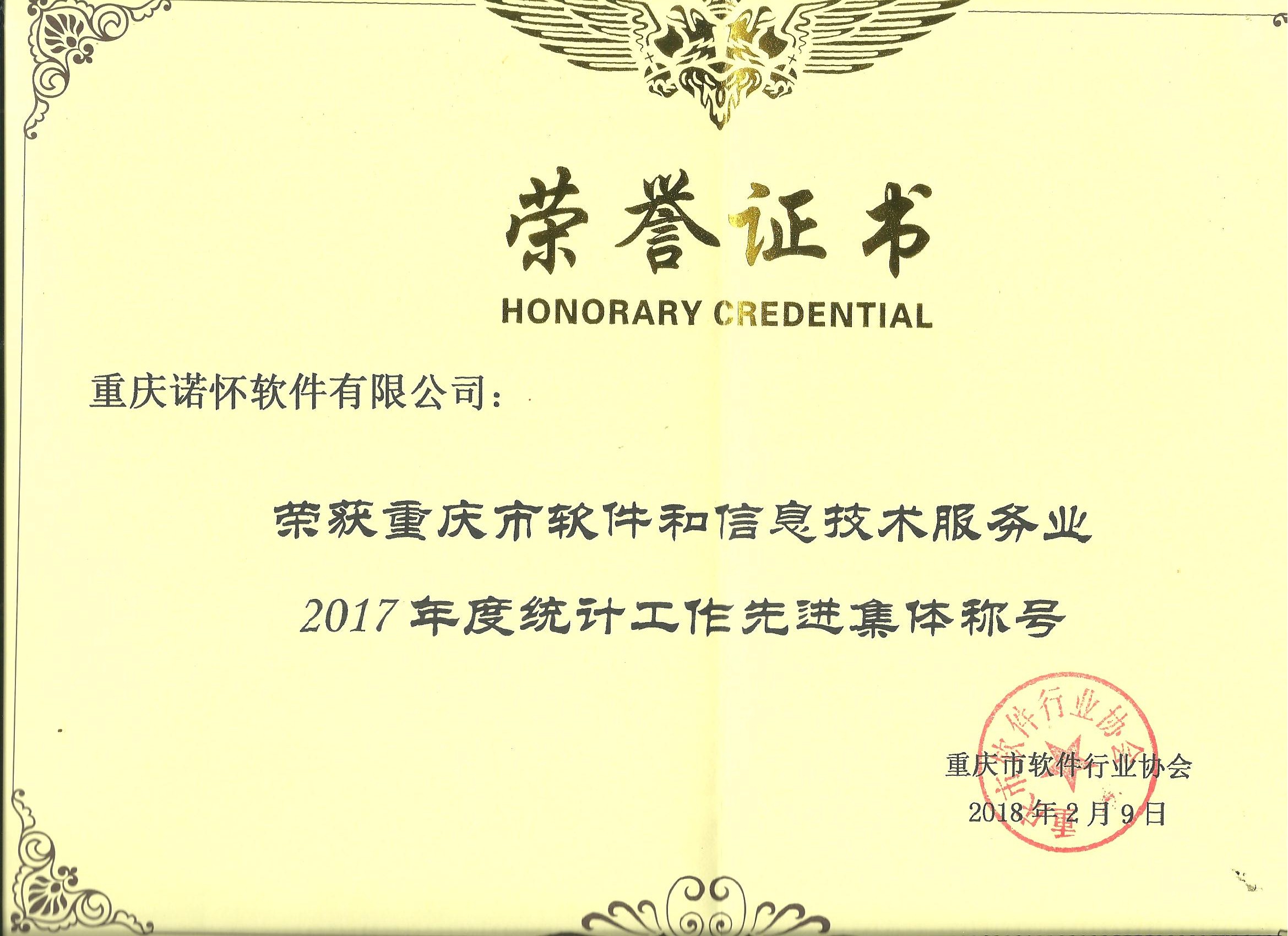 諾懷軟件榮獲“2017年度統(tǒng)計工作先進集體”榮譽稱號